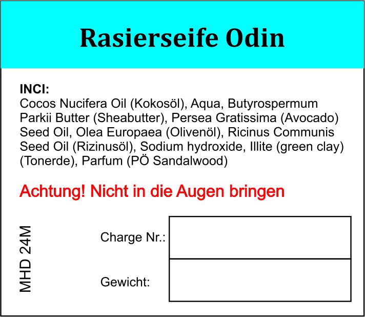 INCI: Cocos Nucifera Oil (Kokosöl), Aqua, Butyrospermum Parkii Butter (Sheabutter), Persea Gratissima (Avocado) Seed Oil, Olea Europaea (Olivenöl), Ricinus Communis Seed Oil (Rizinusöl), Sodium hydroxide, lllite (green clay) (Tonerde), Parfum (PÖ Sandalwood) |