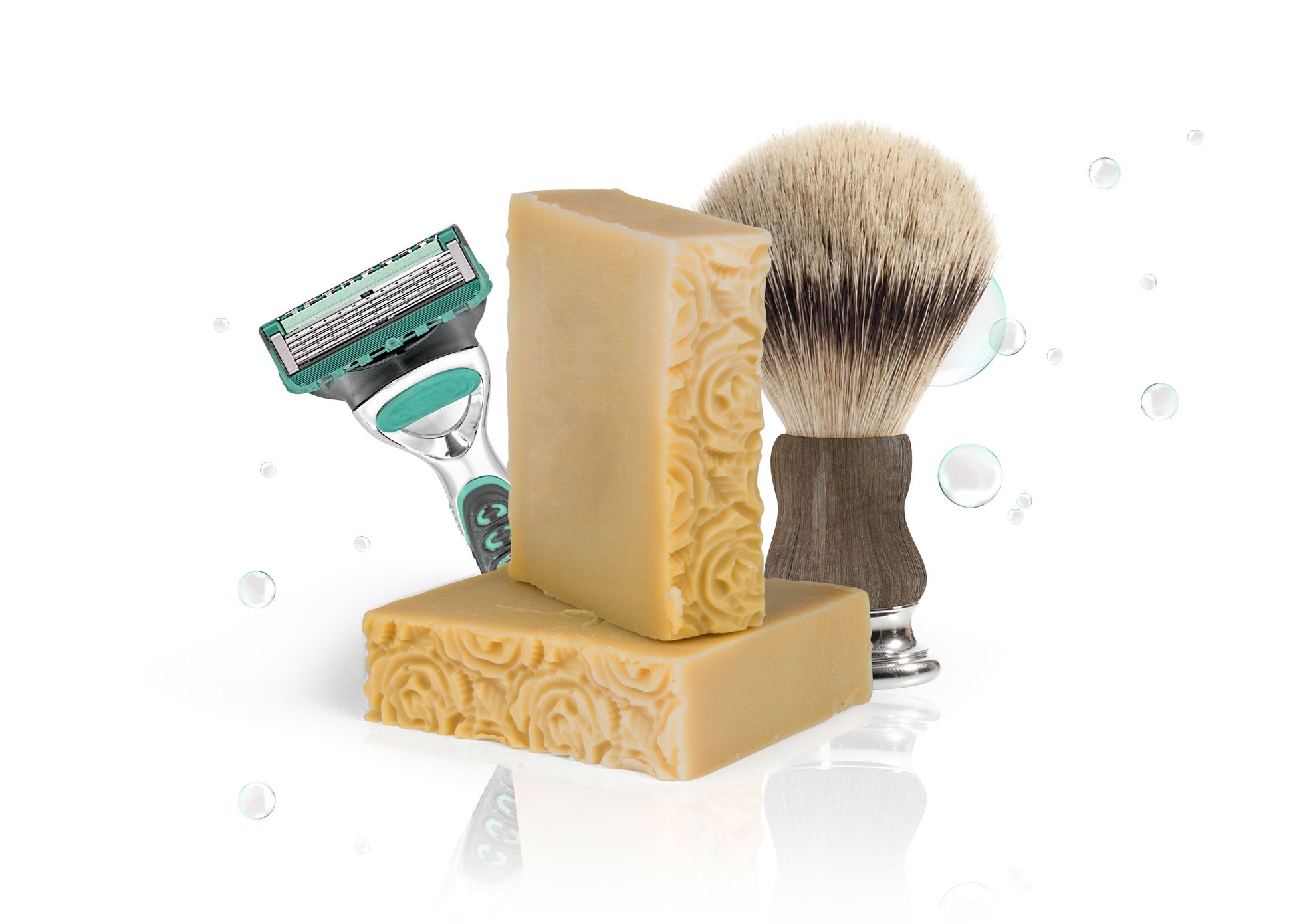 mit einem Rasierpinsel und wenig Wasser aufgeschäumt.